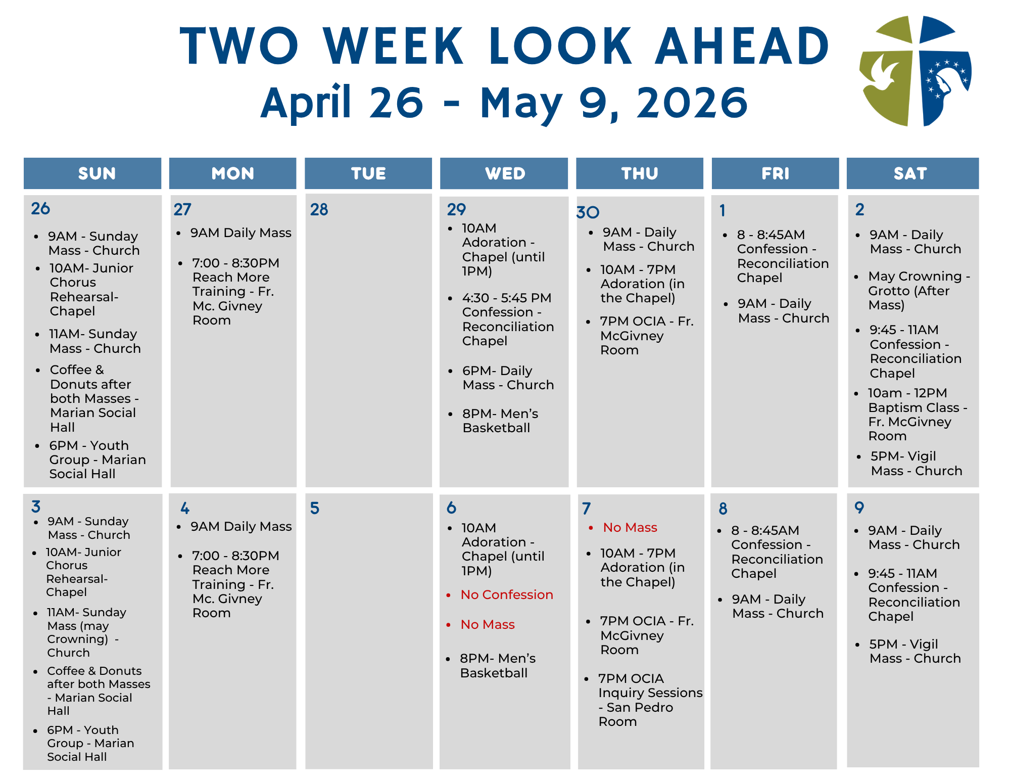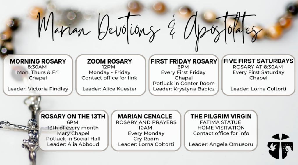 The 9:00 a.m. Sunday Mass and all daily Masses are livestreamed on our YouTube Channel. Click here for Mass livestream.
